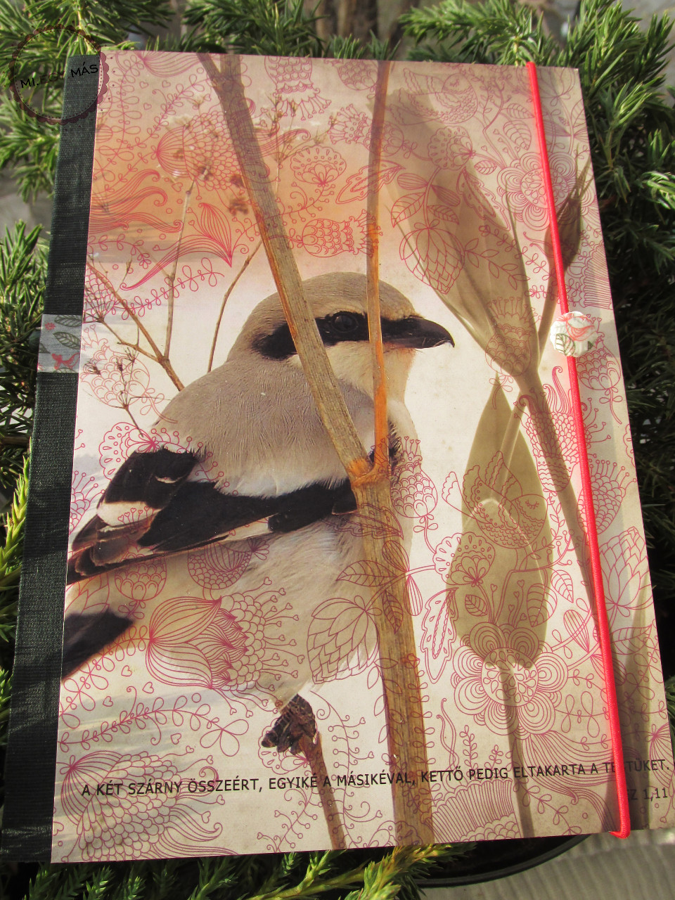 - papírral díszített műanyag gombbal és gumizsinórral záródik, mely könyvjelzőnek is használható.