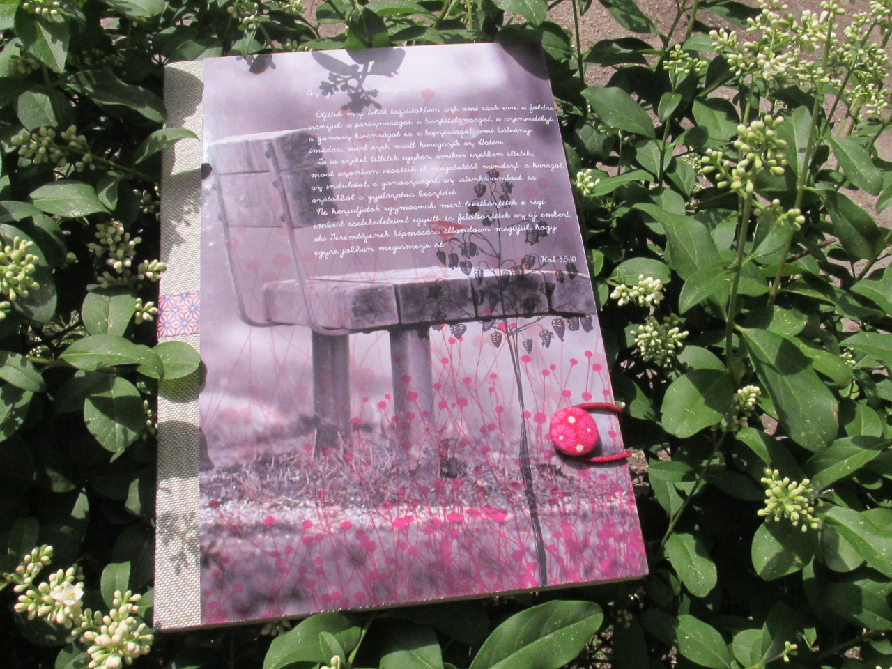 - papírral díszített műanyag gombbal és gumizsinórral záródik, mely könyvjelzőnek is használható.